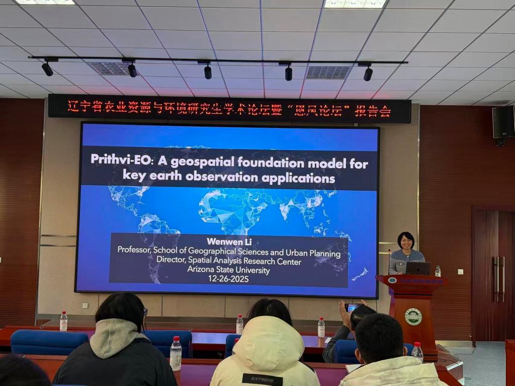 报告围绕地理空间基础模型Prithvi-EO 的构建思路与关键技术,系统介绍了其在地球观测、遥感分析及气候变化研究等方面的典型应用,重点阐述了地理空间人工智能(GeoAI)在大尺度、多源遥感数据处理与地球系统研究中的应用前景。报告内容前沿、理论与实践并重,与会师生就相关研究问题展开了深入交流。